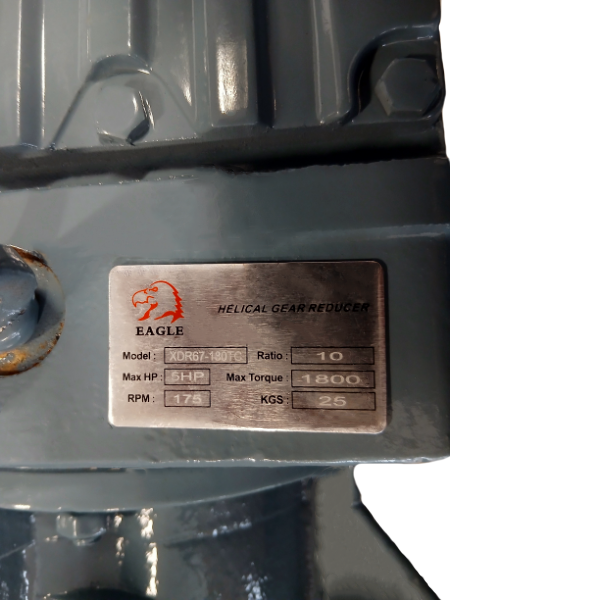 Reductor de velocidad colineal de engranes helicoidales tamaño 67 relación 10 : 1 en hierro fundido.